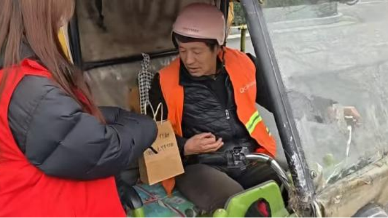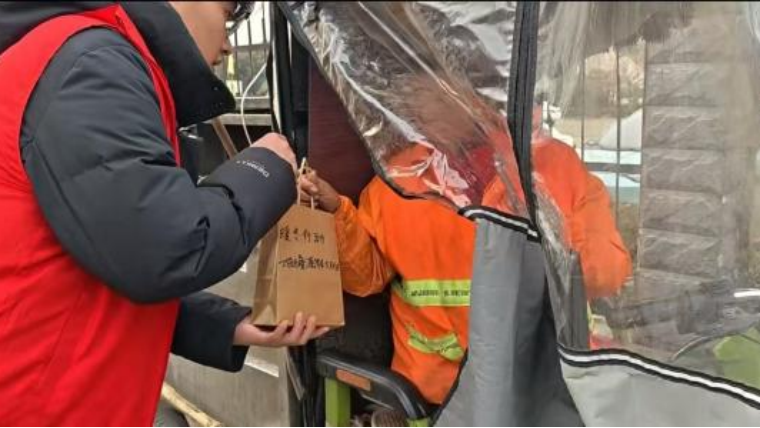 动当日,身着统一志愿者标识服装的同学们,分组走访校园各岗位。在教学楼、校园道路等区域,他们向不畏严寒、坚守岗位的保洁人员送上慰问物资,感谢其日复一日维护校园环境整洁的默默付出;在办公室、辅导员工作站,同学们向深耕教学科研、心系学生成长的教职工递上“暖冬心意包”,表达对师长悉心教导与无私关怀的感激之情;在学生服务中心、校园执勤点,大家为坚守志愿服务岗位的学生伙伴送去温暖,为彼此践行“互助友爱”的志愿精神点赞。一句句真诚问候、一张张灿烂笑脸,让冬日校园涌动着温情暖流,彰显了青年学子的责任担当。