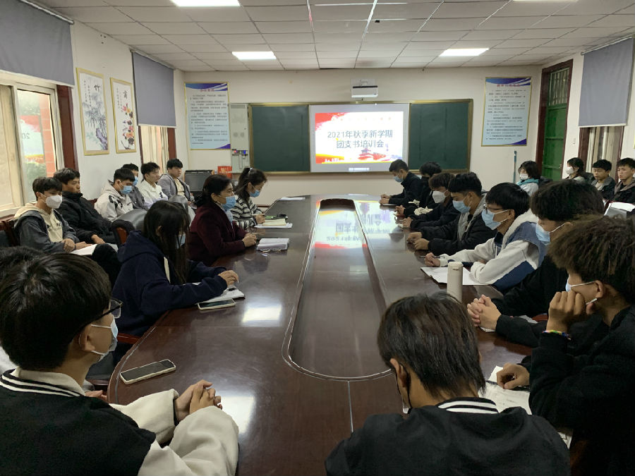 2021年10月19日下午四点三十分,在我校综合楼二楼会议室,校团委组织召开了2021年秋季新学期团支书培训会。