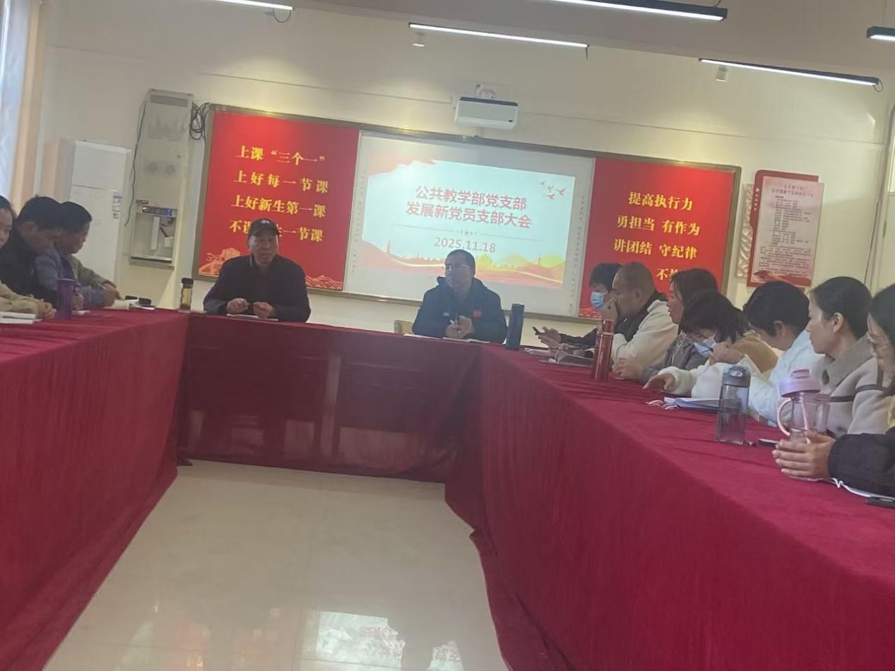 为严格落实党员发展工作要求,持续壮大基层党员队伍,筑牢党组织战斗堡垒。11月18日下午,公共教学部党支部在党员活动室隆重召开支部党员大会。会议由党支部书记王华杰主持,全体正式党员、预备党员及发展对象参加。