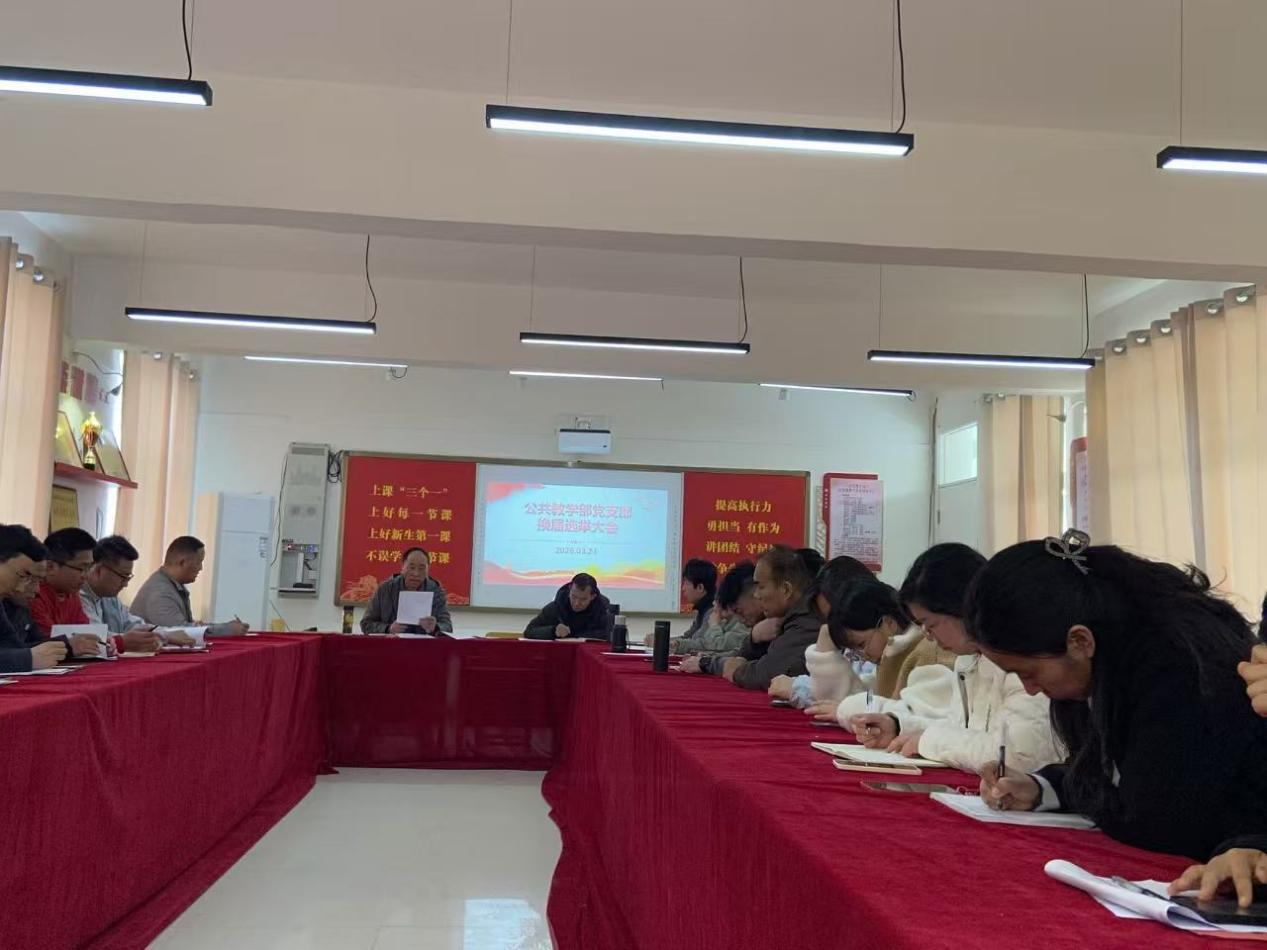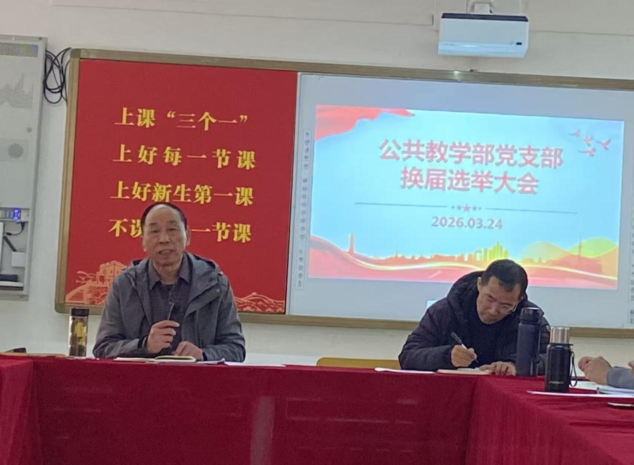 为进一步加强公共教学部党支部组织建设,优化支部班子结构,增强支部的凝聚力、战斗力和创造力,根据《中国共产党章程》,《中国共产党基层组织选举工作条例》及学校党委统一部署,经党委组织部批准。3月24日,公共教学部党支部在205会议室召开2026年支委换届选举党员大会。支部全体党员参加会议,会议由上一届党支部书记王华杰同志主持。