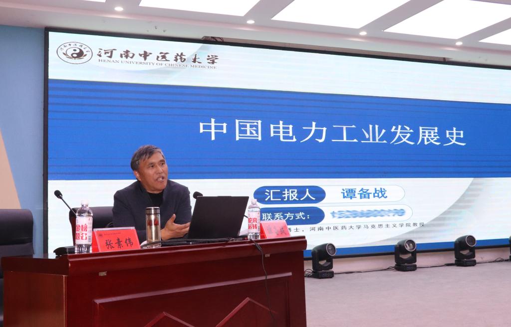 12月18日下午,我校郑电大讲堂第八讲开讲,特邀河南中医药大学马克思主义学院谭备战教授作《中国电力工业发展史》讲座。