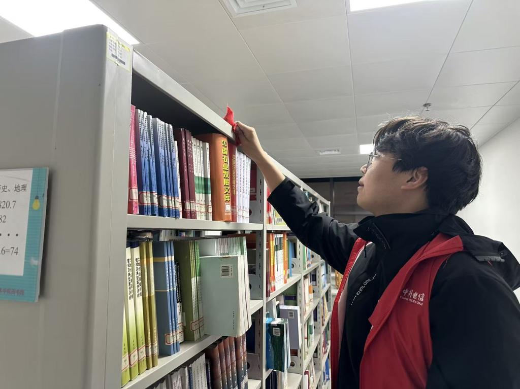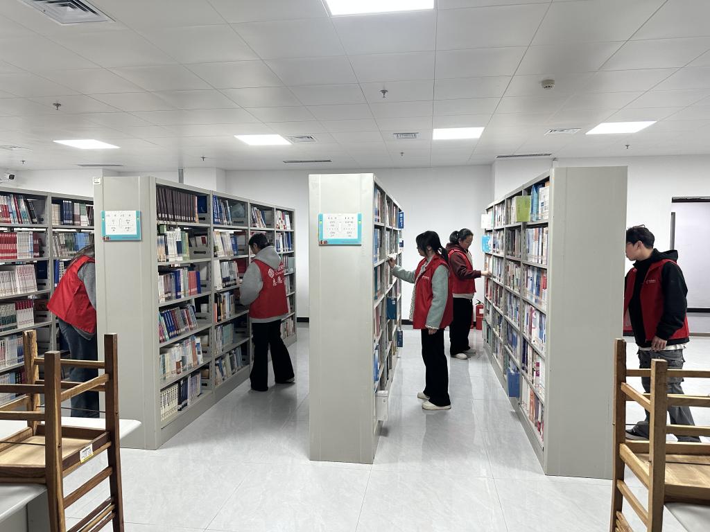 活动现场,志愿者们分工明确、协作有序。他们细心整理图书、规范归架,认真清扫阅览区域,耐心引导文明阅读,并在服务点布置宣传展板,将志愿精神与书香文化有机融合。从图书整理到环境维护,从秩序引导到氛围营造,每一处细节都体现出学子们的责任与担当。