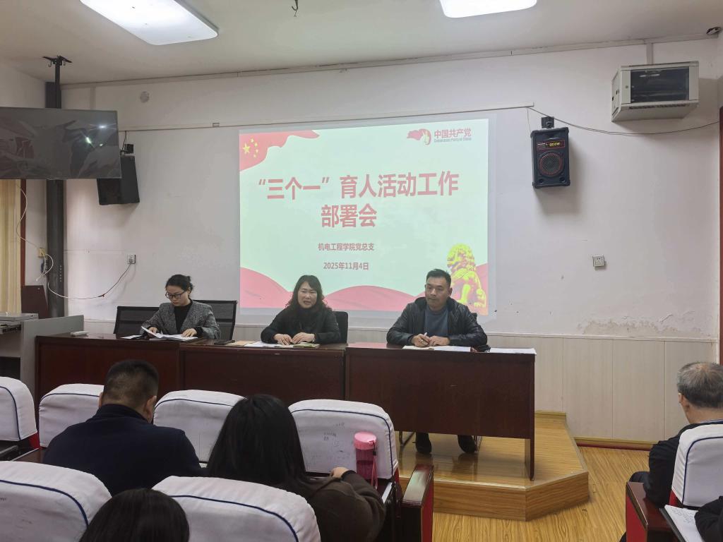 为持续深化“三个一”育人活动,将思想政治工作有机融入教育教学各环节,切实构建“三全育人”格局,近日,机电工程学院在学院会议室召开“三个一”育人活动工作部署会。全体教职工参加会议,会议由机电工程学院院长兼党总支书记潘爱民主持。