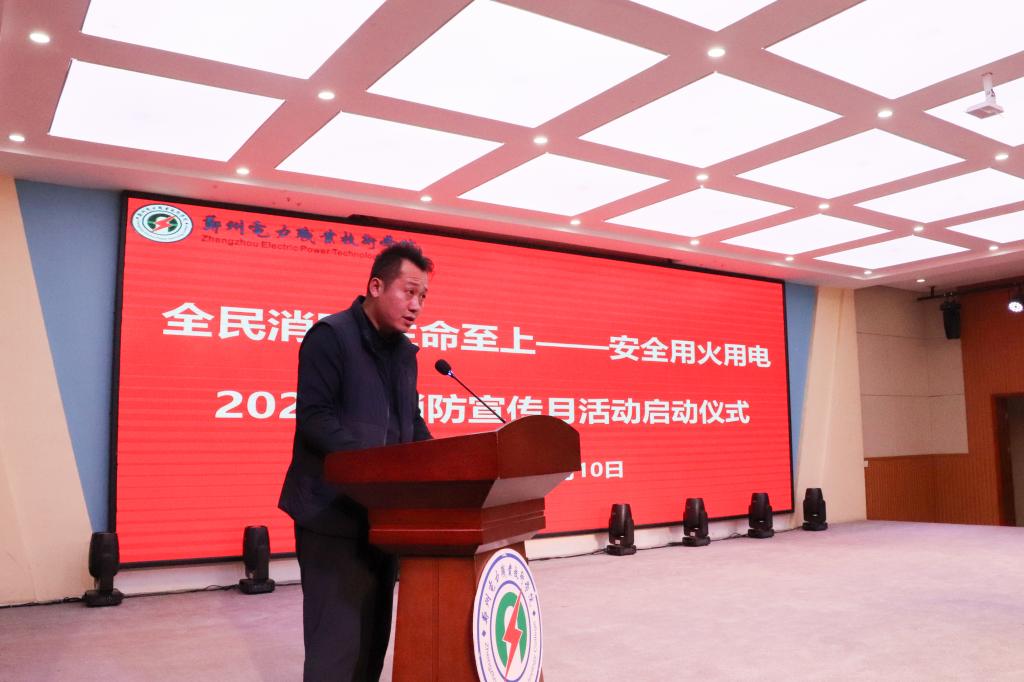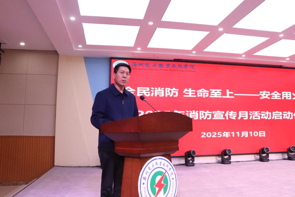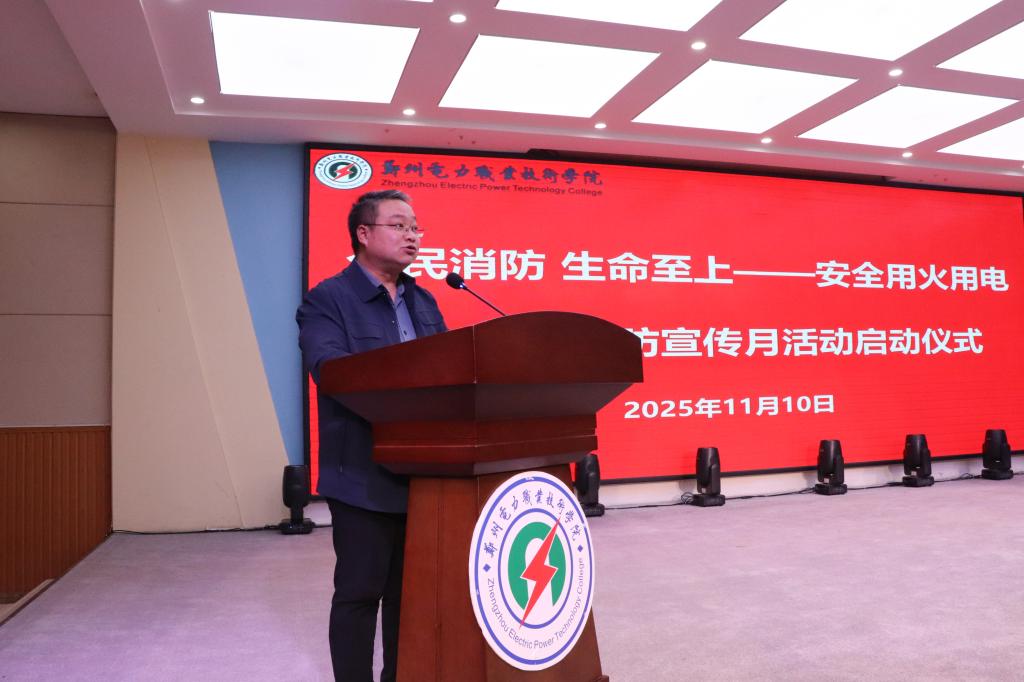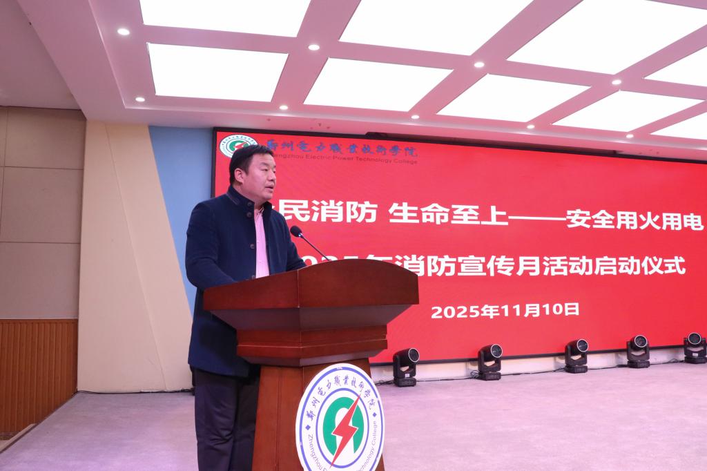 仪式最后,党委副书记杨松林宣布郑州电力职业技术学院2025年消防宣传月活动正式启动。