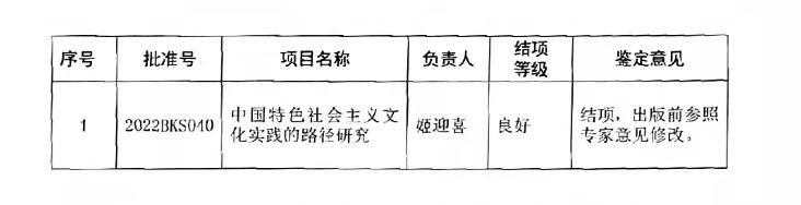 根据河南省哲学社会科学工作事务中心通知,我校由姬迎喜老师主持的“中国特色社会主义文化实践的路径研究”(项目批准号:2022BKS040)河南省哲学社会科学规划项目顺利结项,项目结项等级良好。