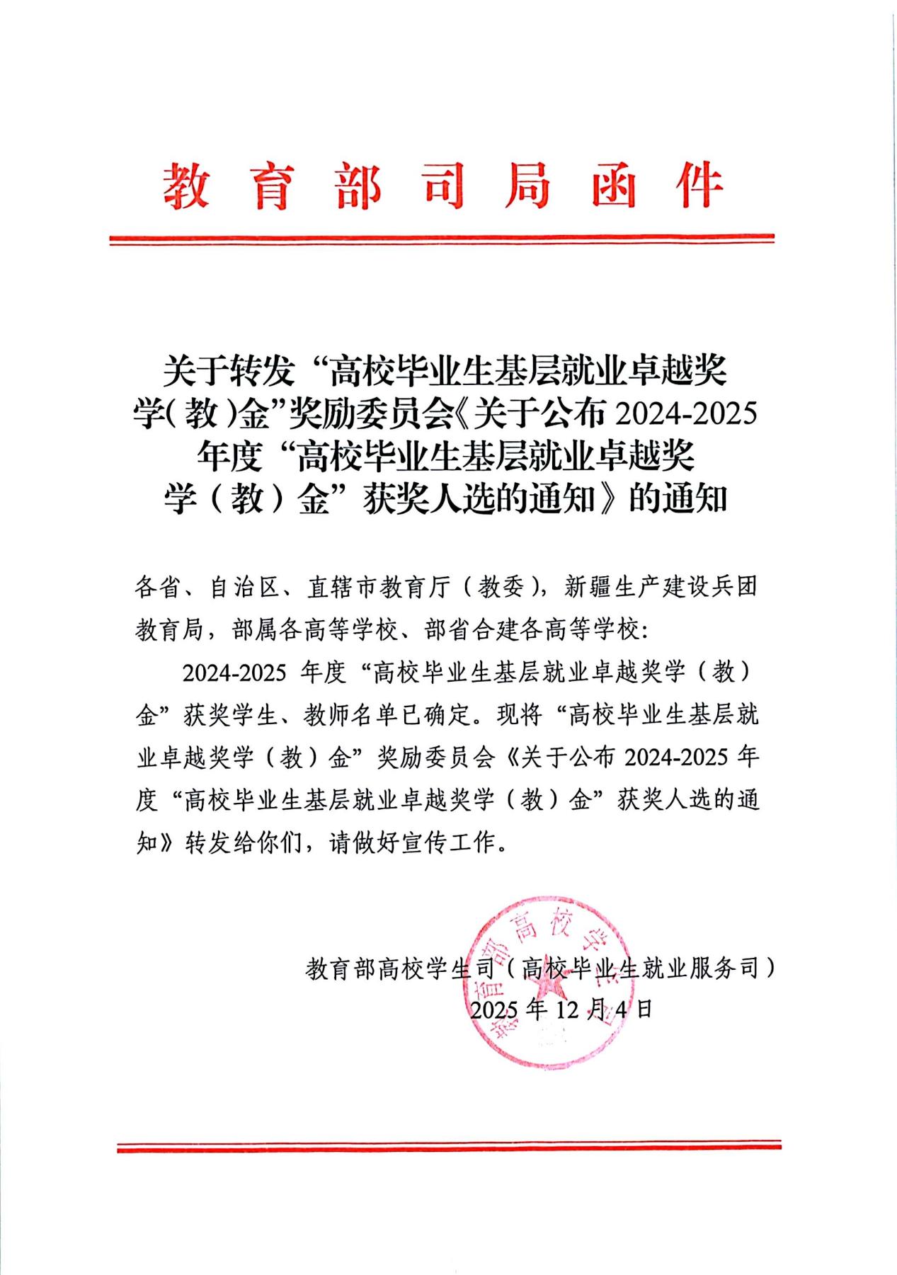 此次获奖既是对张松扎根基层、服务群众、勇担时代使命的充分肯定,也是对我校坚持立德树人、引导毕业生到祖国最需要的地方建功立业育人成效的有力彰显。未来,学校将以此次获奖为契机,进一步总结宣传基层就业先进典型,强化价值引领,深化职业生涯教育,完善就业育人体系,讲好基层奋斗故事,引导更多学子扎根基层、服务国家,在广阔天地中书写无悔青春华章。