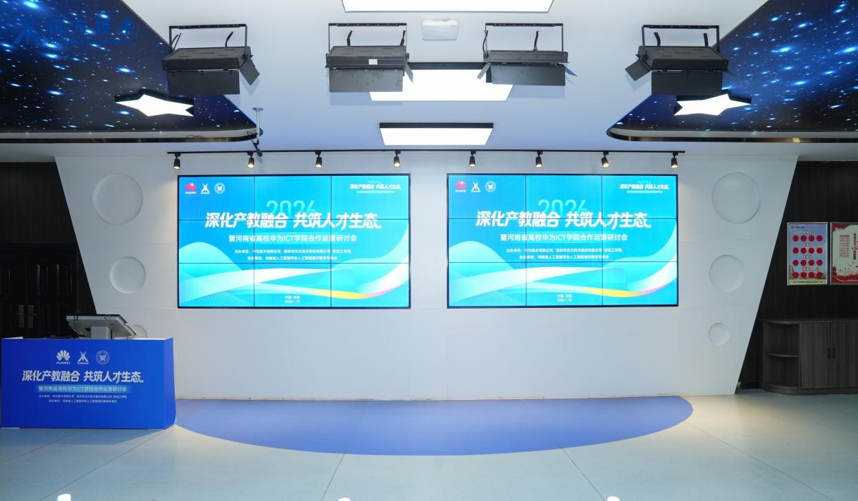 2026年1月10日,“深化产教融合,共筑人才生态暨河南省高校华为ICT学院合作运营研讨会”在河南安阳成功举办。会上,我校“领先级华为ICT学院”正式揭牌,标志着学校与华为技术有限公司、深圳市讯方技术股份有限公司的三方合作进入新阶段。各方将在一期建设成果基础上,重点围绕人工智能与数字孪生技术深化产教融合,共同推动高质量人才培养迈向新台阶。我校党委副书记杨松林、华为河南代表处产业发展与生态部副总经理王振杰共同为学院揭牌。