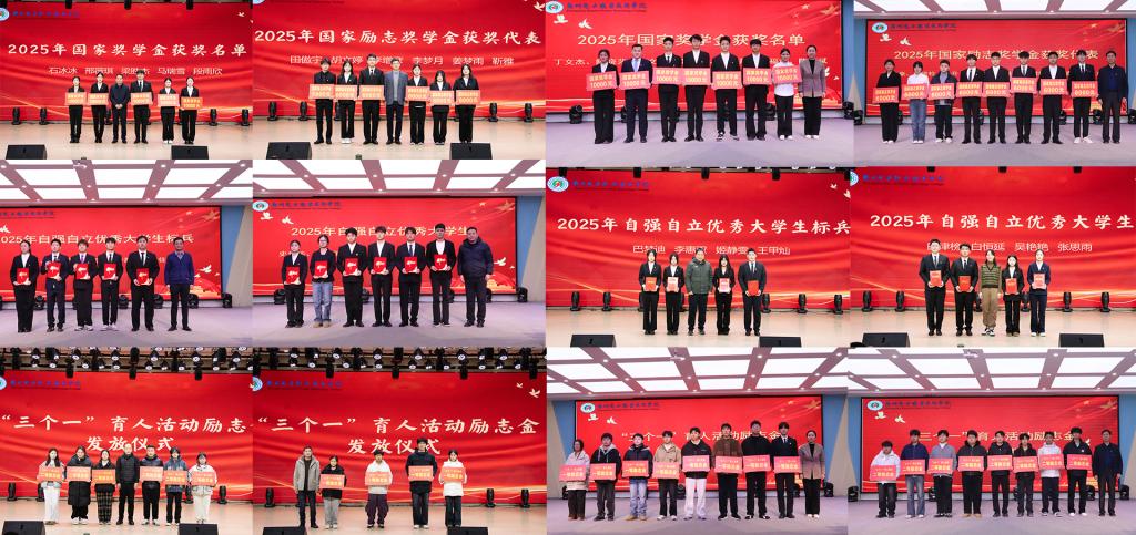活动现场,2025年国家奖学金、国家励志奖学金获奖代表、2025年自强自立优秀大学生及标兵、“三个一”育人活动励志金获奖代表依次上台接受表彰和领取励志金。