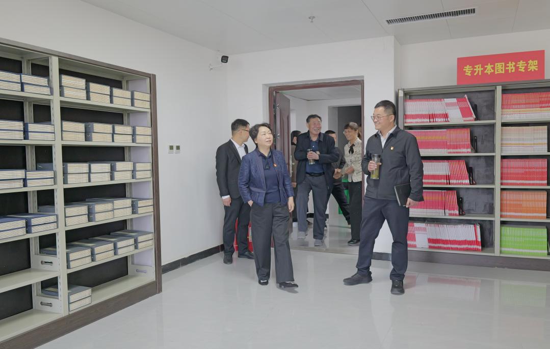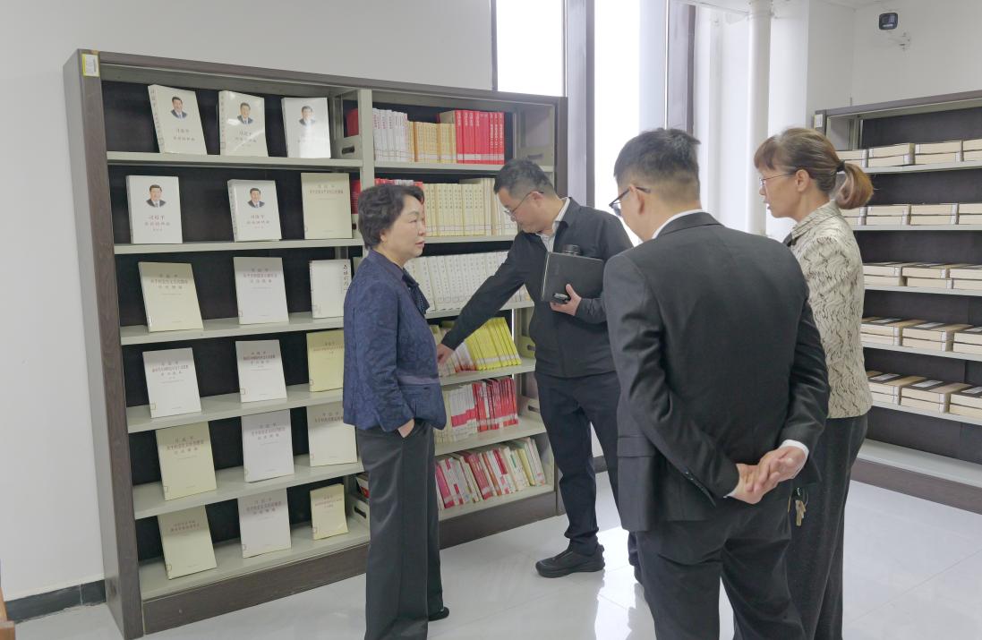 随后,张素伟实地考察了祥符校区图书馆马克思主义理论文库与红色经典导读站。在马克思主义理论文库,张书记认真了解文献收藏与利用情况,要求进一步丰富馆藏、优化布局,打造集学习、研究、宣传于一体的理论高地;在红色经典导读站,张书记饶有兴趣地听取了图书馆红色文化建设与学生思想引领工作的设想,她指出,要通过红色经典导读、红色故事讲解,将红色血脉传承青年一代,厚植学生爱国情怀、培育时代新人。