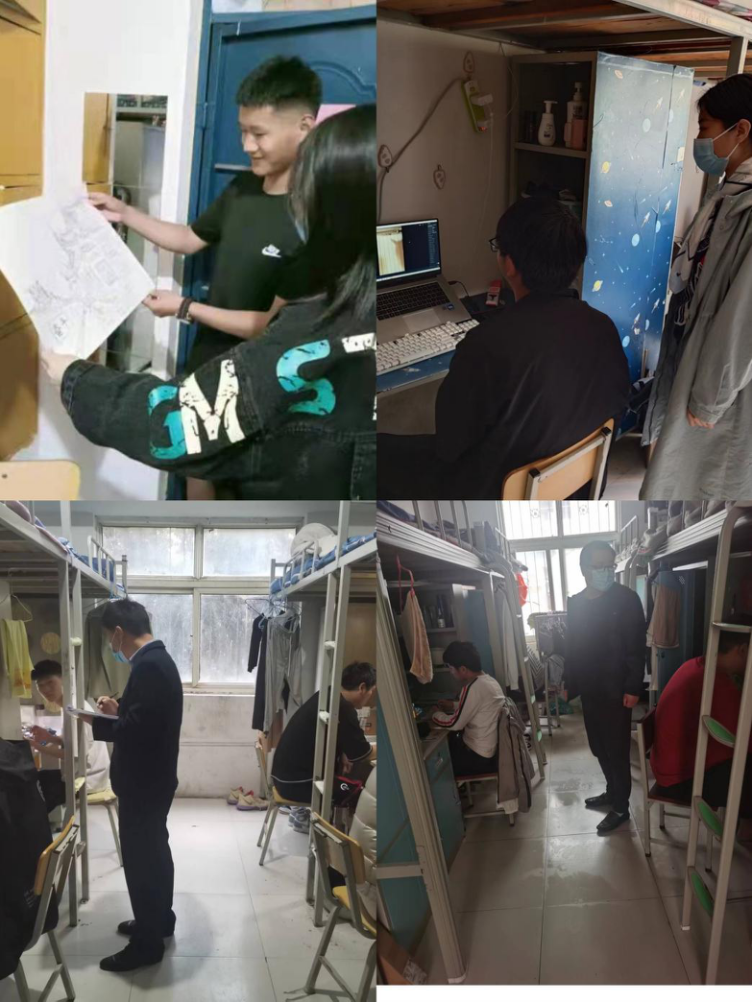 机电工程学院党总支书记兼院长潘爱民、副院长赵永刚,深入学生公寓加强线上教学督导。