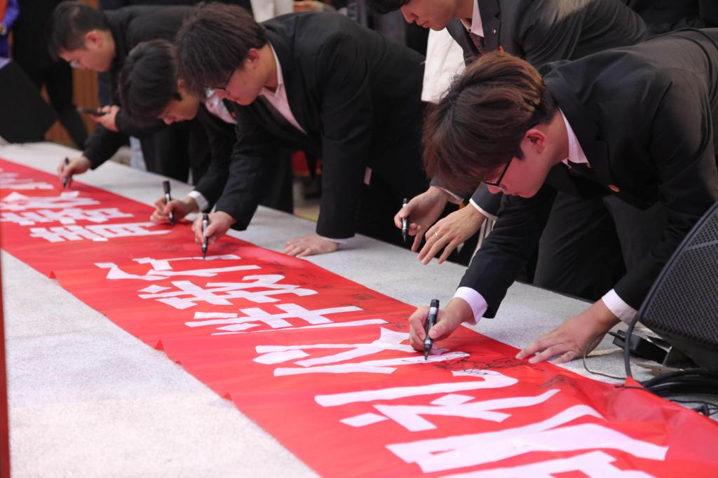 活动最后,在昂扬的背景音乐中,与会领导、老师和学生骨干代表依次上台,在“文明礼仪伴我行 青春校园树新风”主题条幅上郑重签名,表达践行文明、共建美好校园的坚定决心。签名仪式后,全体人员合影留念,动员大会在庄重而热烈的氛围中圆满结束。
