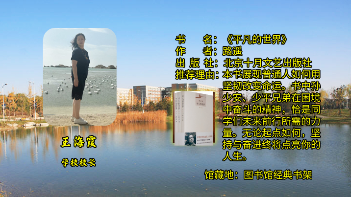 本书展现了普通人如何用坚韧改变命运。书中孙少安、少平兄弟在困境中奋斗的精神,恰是同学们未来前行所需的力量。无论起点如何,坚持与奋进终将点亮你的人生。