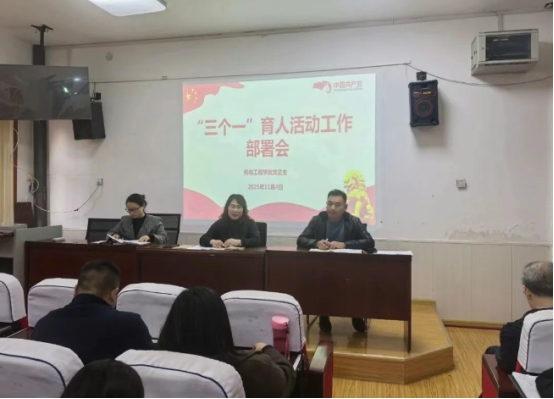 会上,机电工程学院党总支副书记刘增带领全体教职工认真学习了《中共郑州电力职业技术学院委员会关于进一步推进“三个一”育人活动的实施意见》,并就党支部联系学生班级、资助贫困生以及教工党员、干部联系学生宿舍等具体工作作出安排。