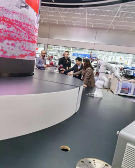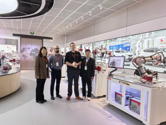 在节卡公司领导的亲自陪同下,我校考察团一行实地参观了节卡机器人股份有限公司的未来空间、尖端研发实验室以及现代化生产车间。在展示大厅,灵活精准、安全易用的节卡系列协作机器人给众人留下了深刻印象,其在家电、汽车、精密制造等领域的创新应用,生动展现了智能制造的无限可能。在研发室和生产车间,考察团深入了解了节卡机器人在核心技术攻关、精益制造和品质控制方面的硬核实力,切身感受到了中国智造的卓越风采。