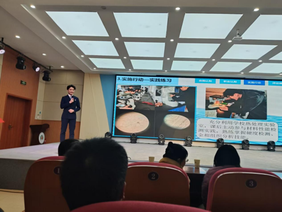 决赛现场气氛热烈而有序。学院常务副院长赵永刚发表开场致辞,他结合机电行业发展趋势与高端技能人才需求,强调职业规划是“人生航向的指南针”,鼓励学予以大赛为契机,将个人理想与行业发展、家国需求紧密结合,在专业领域找准定位、精进技能、筑梦前行。随后,10名选手依次登场,通过PPT动态展示与脱稿汇报,全面呈现职业生涯规划蓝图:成长赛道学子围绕学业深造、技能等级提升、职业资格认证等方面制定系统规划,就业赛道选手则聚焦目标岗位要求,深入分析行业前景、自身优势与能力提升路径,充分展现出机电学子立足专业、放眼未来的开阔视野与扎实素养。汇报过程中,评委团针对每位选手的规划内容进行精准提问与专业点评,为学子完善规划提供宝贵指导。