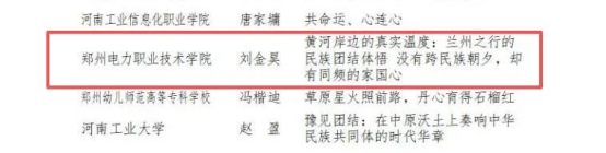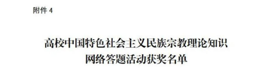 近日,河南省民族宗教事务委员会、省教育厅、省体育局公布“豫来豫亲——铸牢中华民族共同体意识主题教育”实践活动结果,我校学子荣获佳绩。其中李全、时锦晨、张涵、张耀、惠振阳、吉林林等6名同学荣获中国特色社会主义民族宗教理论知识网络答题优秀参与奖;薛灿宇同学荣获铸牢中华民族共同体意识主题征文比赛学生组二等奖,刘金昊同学荣获铸牢中华民族共同体意识主题征文比赛学生组三等奖,实现了我校自参加此赛项以来的新突破。