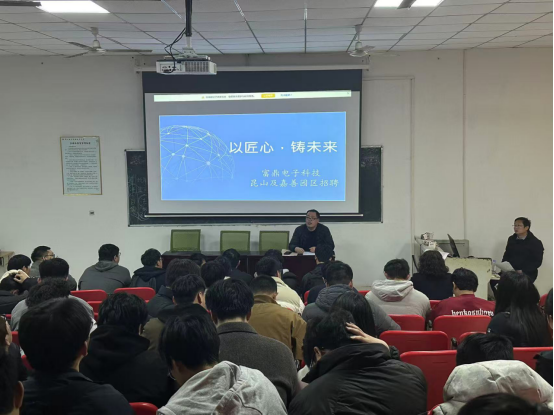 3月21日下午5点30,机电工程学院在北阶梯教室召召开2026届毕业生就业宣讲会。学院团总支书记刘超主持会议,学院院长兼党总支书记潘爱民,26届毕业生年级长侯文明、辅导员代表秦勤勤参会。