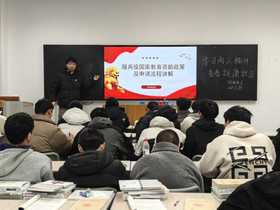 此次资助政策两节课活动覆盖全体学生,由各班级辅导员负责授课。课程内容紧密围绕“服兵役资助政策解读”为核心,通过理论讲授、案例分析、互动答疑等形式,确保政策宣传无死角、教育覆盖无遗漏,切实提升学生对服兵役政策的知晓度和参与积极性。