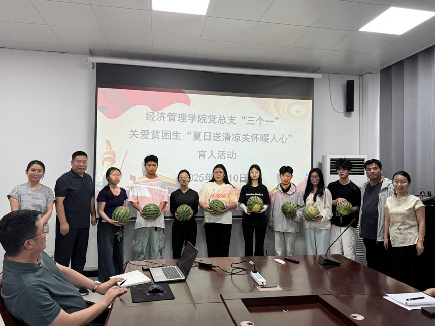 随后,党员同志们为贫困生送上了清甜可口的西瓜,在炎炎夏日为他们带来一份清凉与关爱。受助学生纷纷表示:学院的关怀让他们倍感温暖,今后定将牢记师长期望,以勤勉回报学校老师的关爱,以行动践行使命担当,在逆境中磨砺成长,争做堪当大任的栋梁之才。
