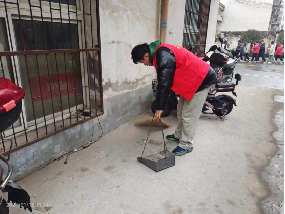 他主要负责的是协助弋阳办事处在第四中学大门口维护交通秩序和卫生清扫工作。改善了家长来接学生时电动车乱停乱放的秩序,对学校和街道边的角角落落的垃圾进行了清扫。