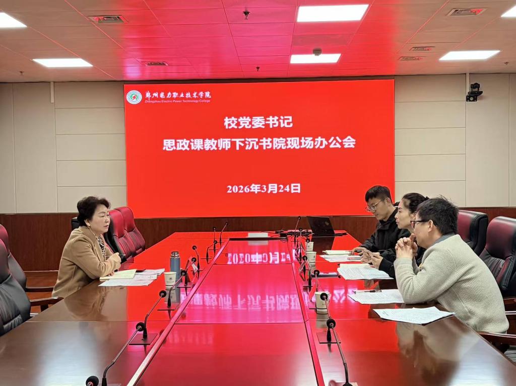 会上,马克思主义学院党支部书记姬迎喜围绕《郑州电力职业技术学院思政课教师下沉书院实施方案》《图书馆 马院 学工部 书院联合共建“红色书驿”实施方案》作详细汇报,系统阐述了思政课教师下沉书院的目标定位、职责体系、保障机制,以及“红色书驿”共建项目的建设规划、活动载体与育人愿景。智能与信息工程学院党总支书记冯慧蕾,以及学工部副部长乔政尧等部门代表依次作交流表态发言。各部门立足自身职能,一致表示将强化协同、主动作为,切实打通思政教育“最后一公里”,确保思政课教师下得去、留得住、干得好。