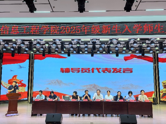 在师生发言环节,朱瑞丰作为教师代表,用诚挚的话语寄语新生,“学会学习,学会生活,才能走的更远”,希望他们能够珍惜机遇,勇敢追求梦想,不断提升自我。辅导员代表吕昱昊则分享了自己的工作经验,提醒新生注意学业规划,合理安排时间。2024级优秀学生代表梁胜杰在发言中,分享了自己在学院的成长经历,表达了对新生的热烈欢迎和美好祝愿。2025级李舒敏同学代表全体新生表示,将以饱满的热情投入到新的学习和生活中,努力成为学院的骄傲。