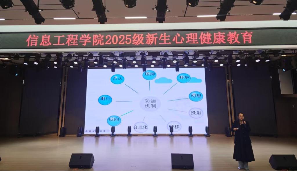 为进一步加强学校心理健康教育工作,切实加强和改进学生心理健康教育,提高学生心理调节能力,促进学生全面健康成长,信息工程学院于9月22日开展心理健康教育讲座,此次邀请心理健康教育中心胡清云老师为25级新生带来了一场欢快的心理健康讲座。