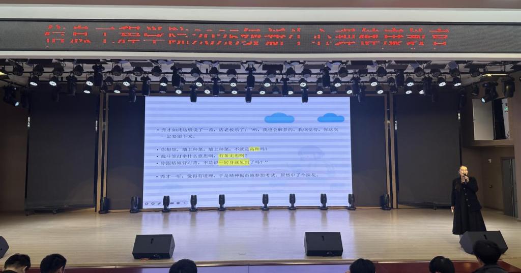 直播结束后,胡清云以亲切的言语指出心理困惑是成长的“必修课”,针对大学新生常见的情绪与心态变化进行了深入剖析,分享了多种实用的情绪管理与自我调适方法,引导同学们认识到情绪觉察与调节的重要性与必要性。讲座指出,学会自我调节、保持身心愉悦、接纳他人以及增强自信心,是培养积极心理品质、实现健康成长的重要基础。她引导学生积极参与互动,通过完成“看字体颜色说颜色”等活动,深入思考自我成长与情绪调节。现场气氛热烈,掌声阵阵,学生纷纷表示收获满满。