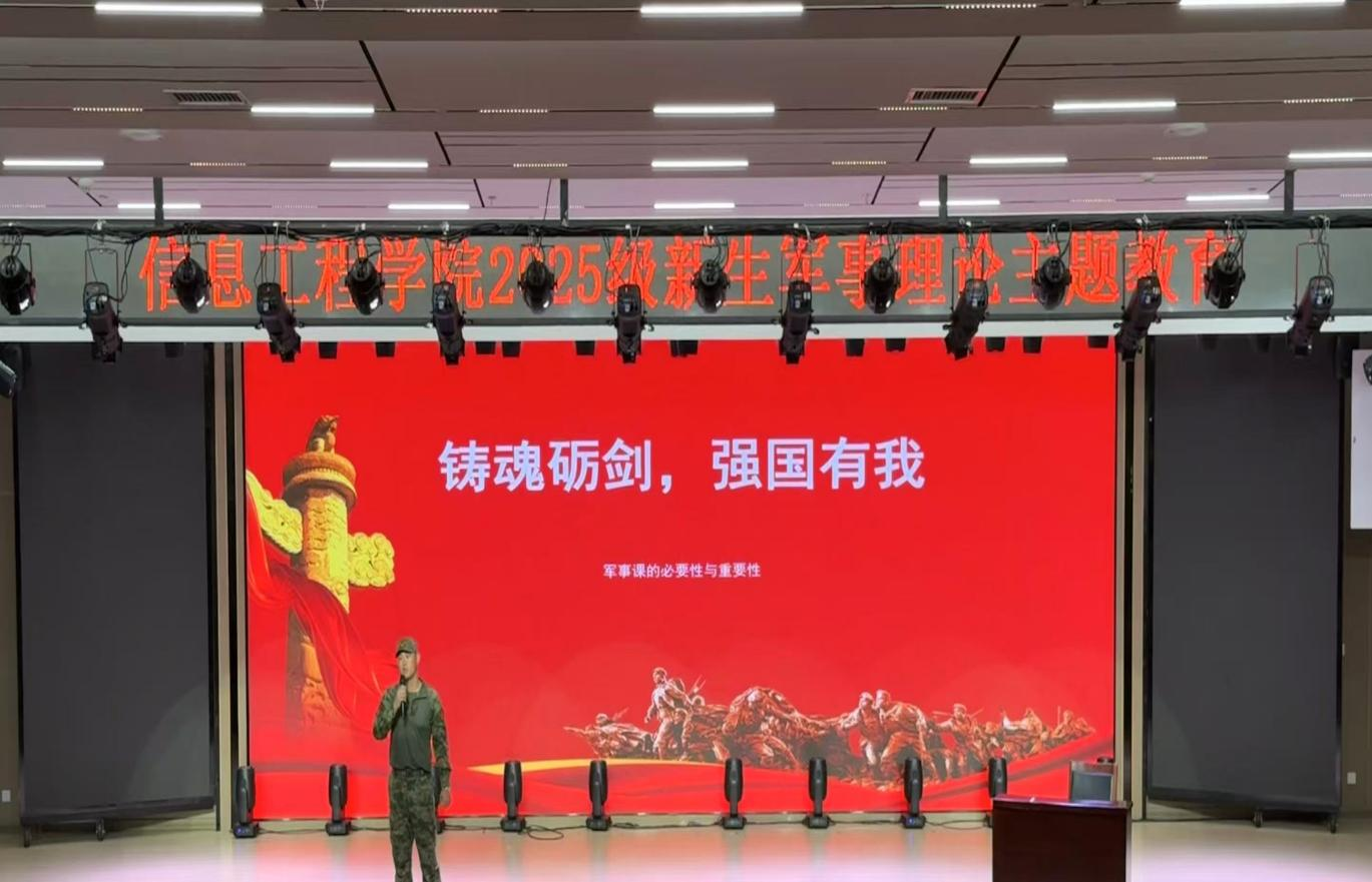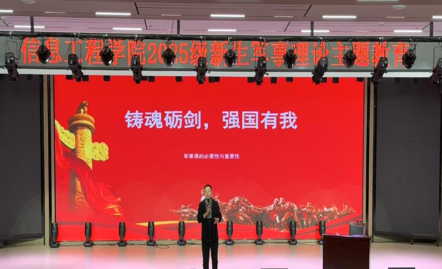 10月17日,信息工程学院(鲲鹏书院)成功举办2025级新生军事理论主题教育活动。活动邀请学院军事理论教师祁道平讲授军事理论知识,并特别邀请军训教官张教官分享军旅经历,为新生带来了一堂兼具理论深度与情感温度的国防教育课。活动由学院党总支副书记宋怀阳主持,全体辅导员和2025级新生参加。