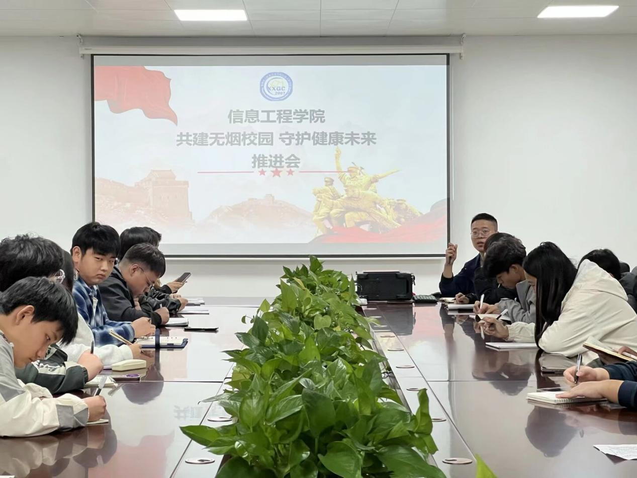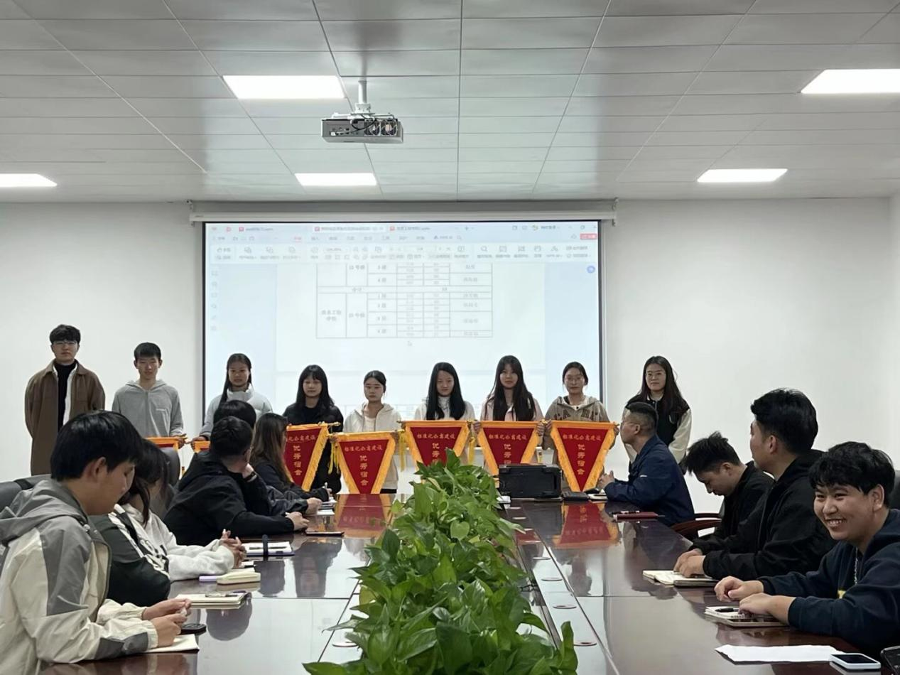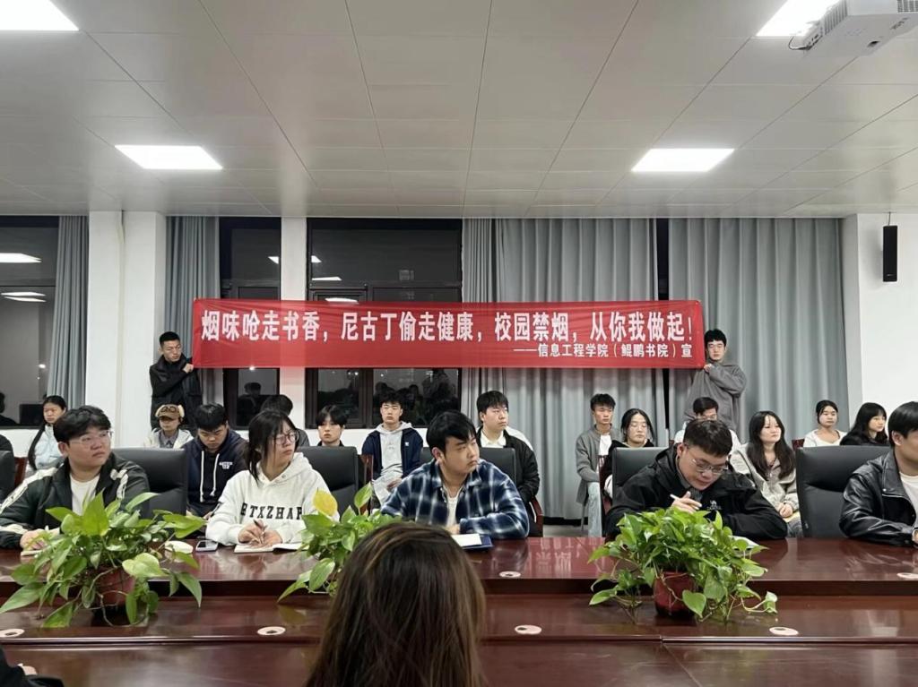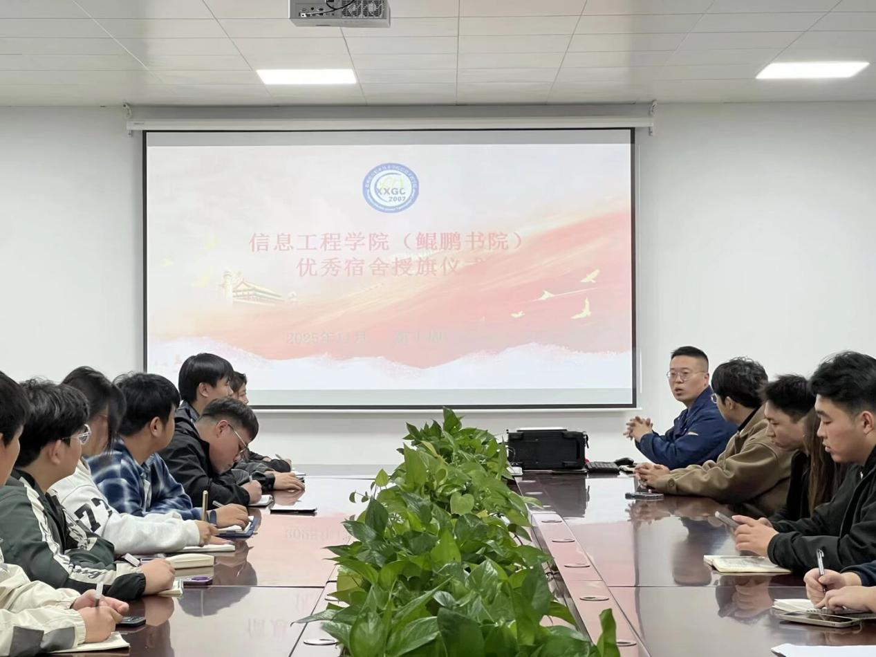 为深入贯彻立德树人根本任务,积极构建"三全育人"工作格局,11月5日,信息工程学院(鲲鹏书院)成功举办"优秀宿舍授旗"与"无烟校园建设"系列活动。此次活动旨在通过树立先进典型、营造优良环境,全面提升育人实效,为培养德智体美劳全面发展的时代新人奠定坚实基础。活动由窦逸祥老师主持,学院党总支副书记宋怀阳,全体辅导员及各班级团支书全程参与,共同见证这一推动校园文明建设的重要时刻。