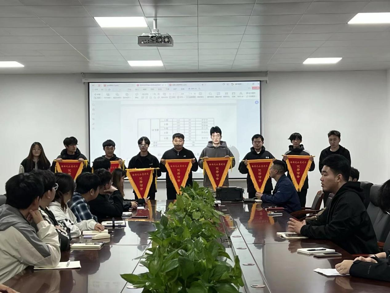 在优秀宿舍授旗仪式上,窦逸祥、孙文皓与涂伟佳三位老师共同为获奖宿舍代表授旗,表彰其在环境维护、学风营造和文化建设方面的突出成绩。宋怀阳强调:“这面流动红旗既是荣誉的象征,更是责任的传承。希望获奖宿舍发挥示范引领作用,让文明之风浸润每个角落,共同打造立德树人的坚实阵地。”活动现场气氛热烈,充分展现了榜样引领的辐射效应。