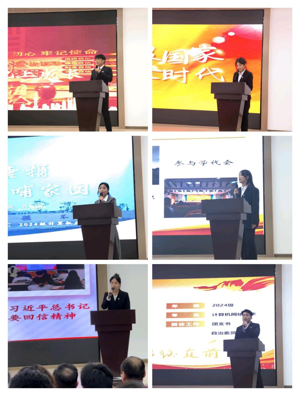 信息工程学院党总支书记冯慧蕾在总结讲话中,她高度评价六位同学的精彩报告,称其虽无惊天动地之举,却以平凡故事展现出自强自立、勇于担当的精神。冯书记指出,学院在“双高”建设中成绩斐然,同学们应树立远大理想,将个人梦想融入“中国梦”,培养职业素养与专业技能,勇于面对挑战。她勉励大家勤奋学习,不负韶华,以优异成绩回报父母、学校与社会,成为有理想、敢拼搏、能吃苦、勇担当的新时代青年。