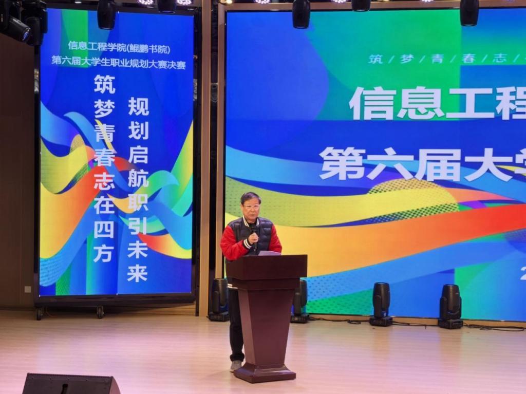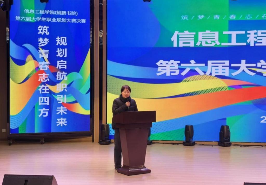 为深入贯彻落实就业育人工作要求,积极引导我院学子精准把握当前就业市场的新形势与新动向,牢固树立科学的成才观、理性的职业观,12 月 3 日下午,信息工程学院职业规划大赛学院总决赛成功举办。经历班级赛和学院初赛最终脱颖而出的9名选手晋级本次总决赛。副校长、祥符校区管委会主任连银岭、信息工程学院院长陈志国教授、艺术传媒学院院长王西军教授、就业创业中心主任钟智及各学院书记莅临观赛。