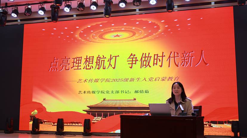 为加强新生思想政治引领,筑牢信仰根基,引导广大青年积极向党组织靠拢。近日,艺术传媒学院面向2025级全体新生举行入党启蒙教育。学院党支部书记郝倩茹担任主讲,为同学们带来了一堂内容充实、思想深刻的入党启蒙第一课。
