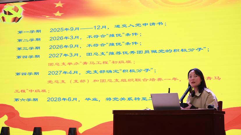 为使新生全面了解入党程序,郝书记系统梳理了从提交入党申请书到成为正式党员的完整流程与关键节点,并结合学院“青马工程”初、中、高三级培训体系,为同学们规划出清晰的在校政治进步路径,鼓励大家早立志、早规划、早行动。