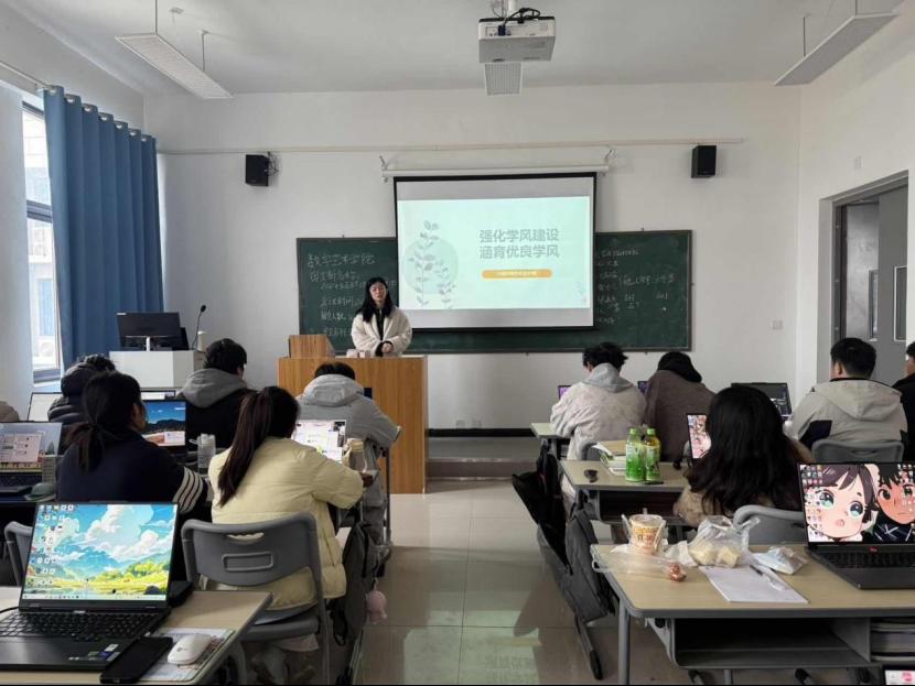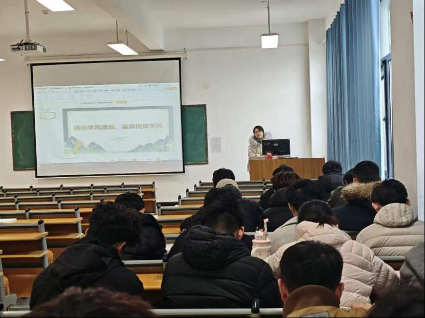 思想引领方面,辅导员带领学生重温学风内涵,结合校纪校规与正反案例,阐述优良学风的重要性,引导学生认同“学风建设人人有责”。