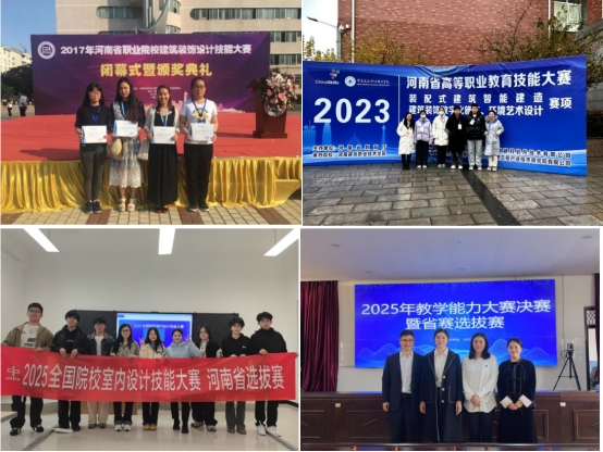 建筑装饰专业教师及带学生获得国赛、省赛级奖项80余项。深耕建筑装饰专业教学与技能竞赛指导工作,坚持以赛促教、以赛育人,长期带领学生参与国家级、省级职业技能竞赛,累计斩获各级奖项 80 余项。其中多次带领学生荣获国家级竞赛一、二、三等奖,省级竞赛一、二、三等奖,奖项成果丰硕,竞赛育人成效显著。