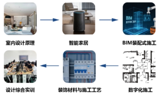 本专业构建了系统完善的课程体系,课程内容全面覆盖室内设计、装饰材料与施工工艺、BIM 技术应用及装配式装修等核心模块;同时深度融入数字化施工、适老化空间设计、智能家居应用及电力装饰等前沿实用技能,着力培养兼具设计能力、施工技术与数字化素养的高素质复合型技术技能人才。